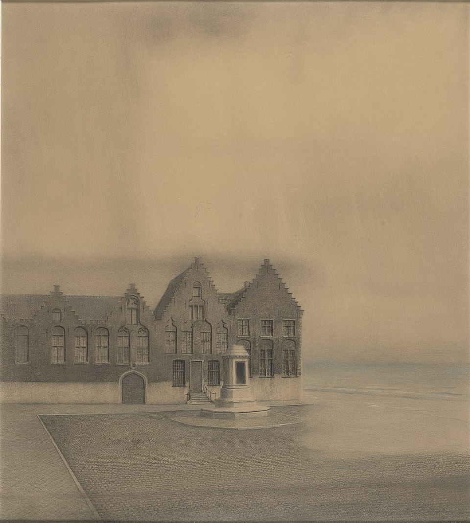 クノップフは実在の風景を直接描くのではなく、自身の内面イメージを投影した空虚な都市を構築し、現実離れした静けさと神秘性を生み出しました。